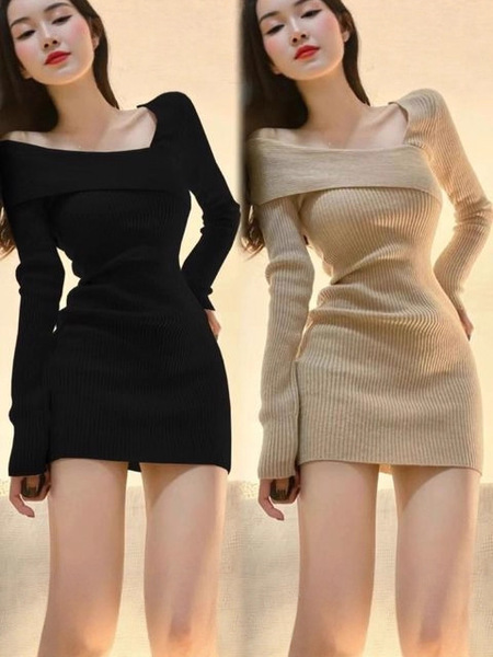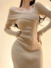 Autumn knitted dress, demi-season skirt, hip-accented, western style, tight, city style