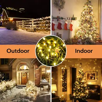 Solar Powered Warm White LED Fairy String Lights Outdoor Christmas Garden Party Decorative Curtain IP65 Waterproof Rechargeable