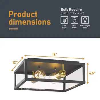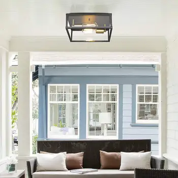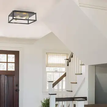 2-Lights Indoor Lighting Flush Mount Hotel Home Led Light Fixture Vintage Industrial Bedroom Ceiling Lamp With Matte Black