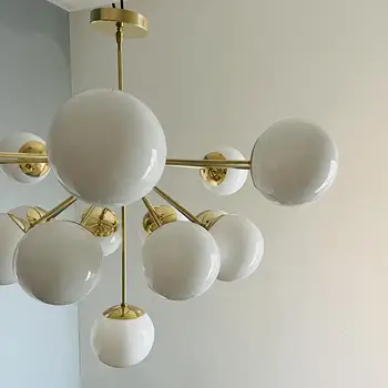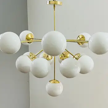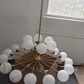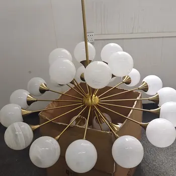 17 Arms LED Handmade Polished Brass Sputnik Chandelier Modern Globe Light White Chandelier Light Fixture
