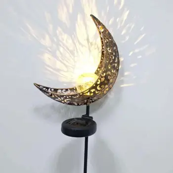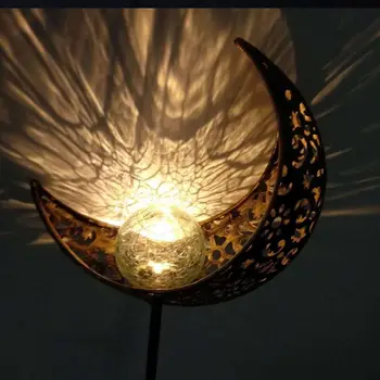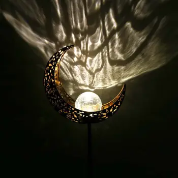 Outdoor Solar Garden Light Warm White LED IP65 Waterproof Moon Crackle Glass Globe Stake Metal Lights for Pathway Power Battery