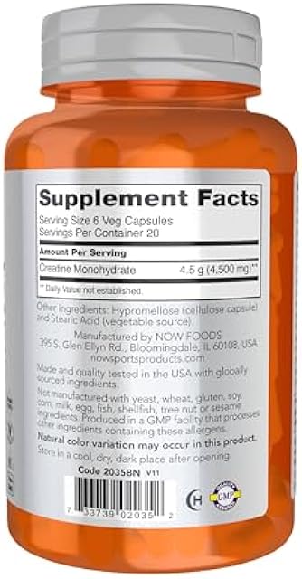 NOW Foods Sports Nutrition, Creatine Monohydrate 750 mg, Mass Building*/Energy Production*, 120 Veg Capsules